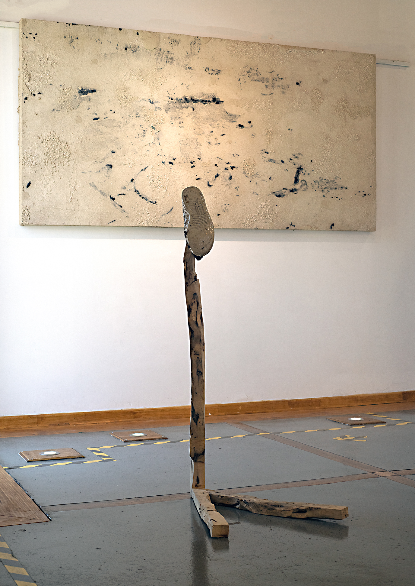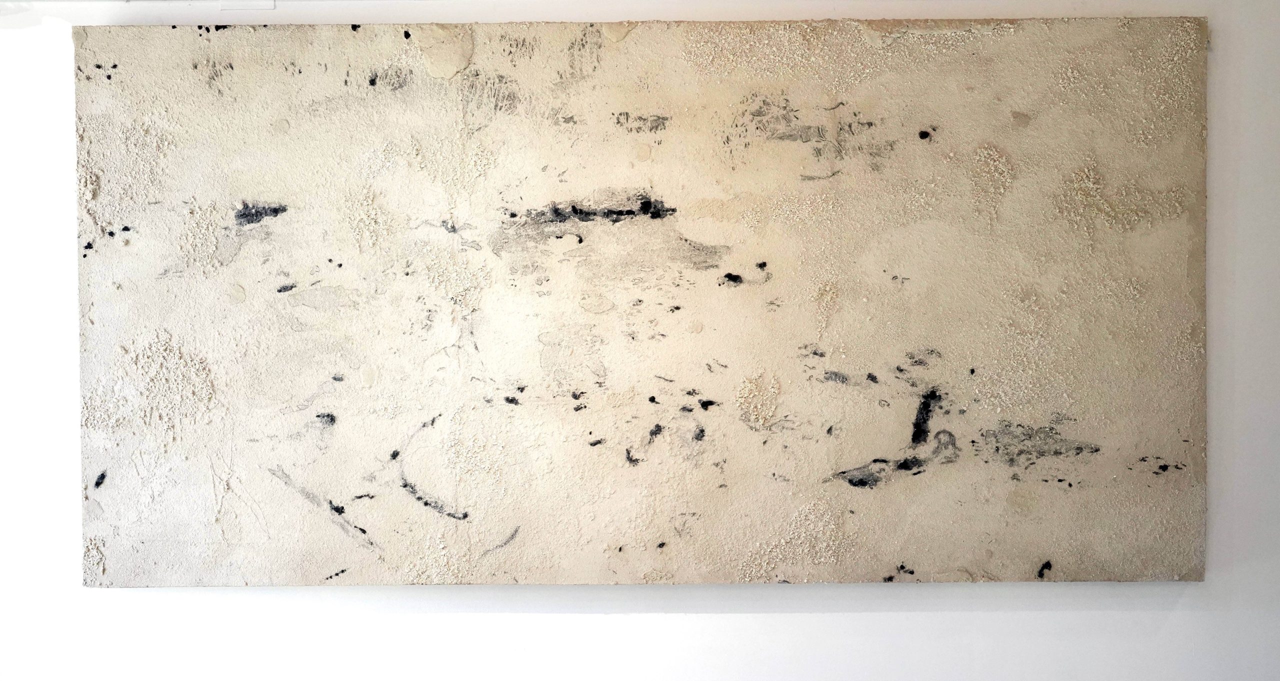 Calco de calcio, Carbonato de calcio y carbón sobre lámina de eucaliptus, 240 x 120 cm.