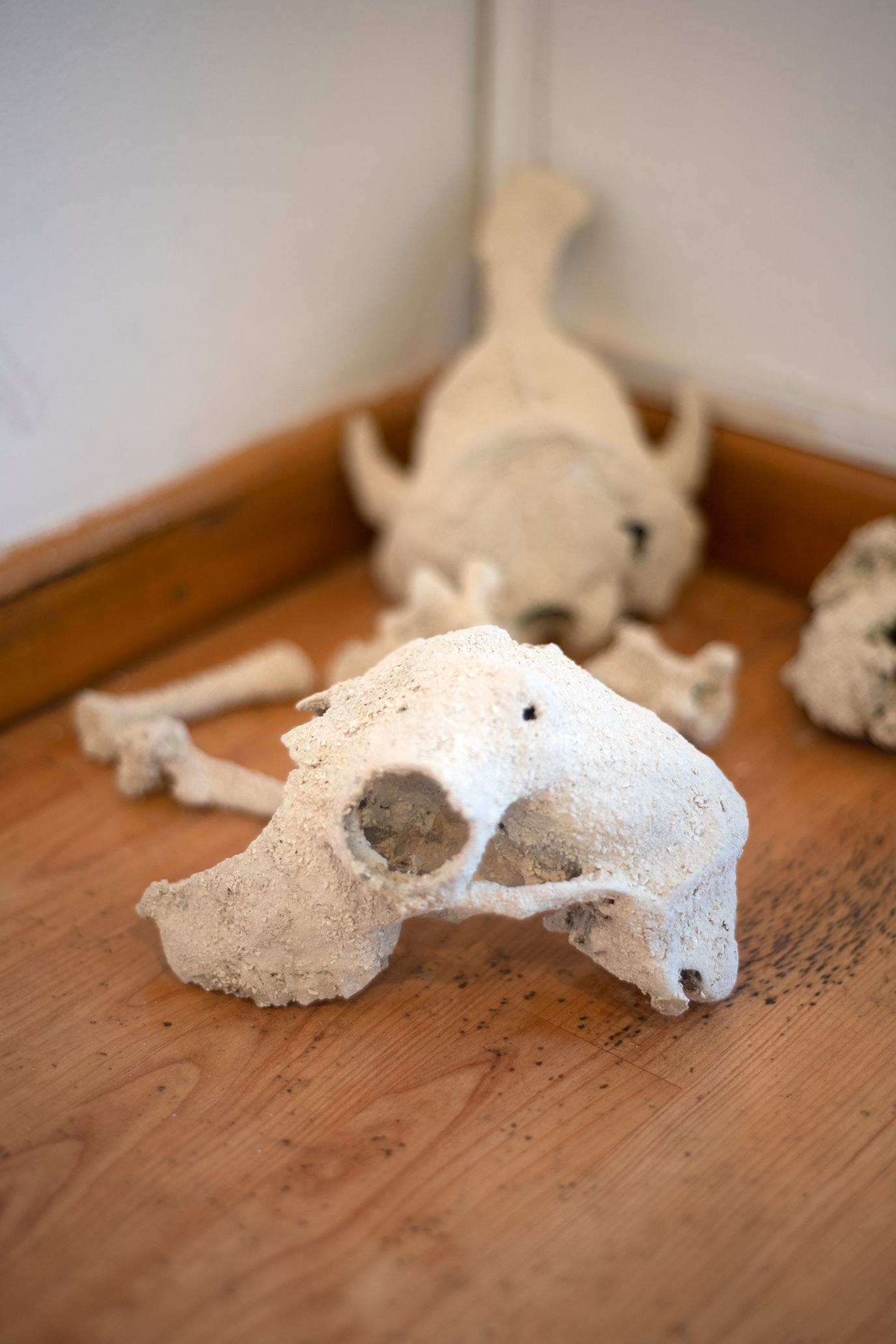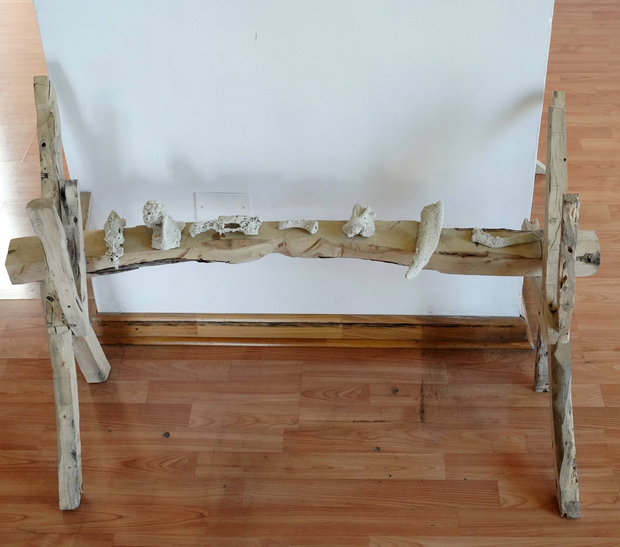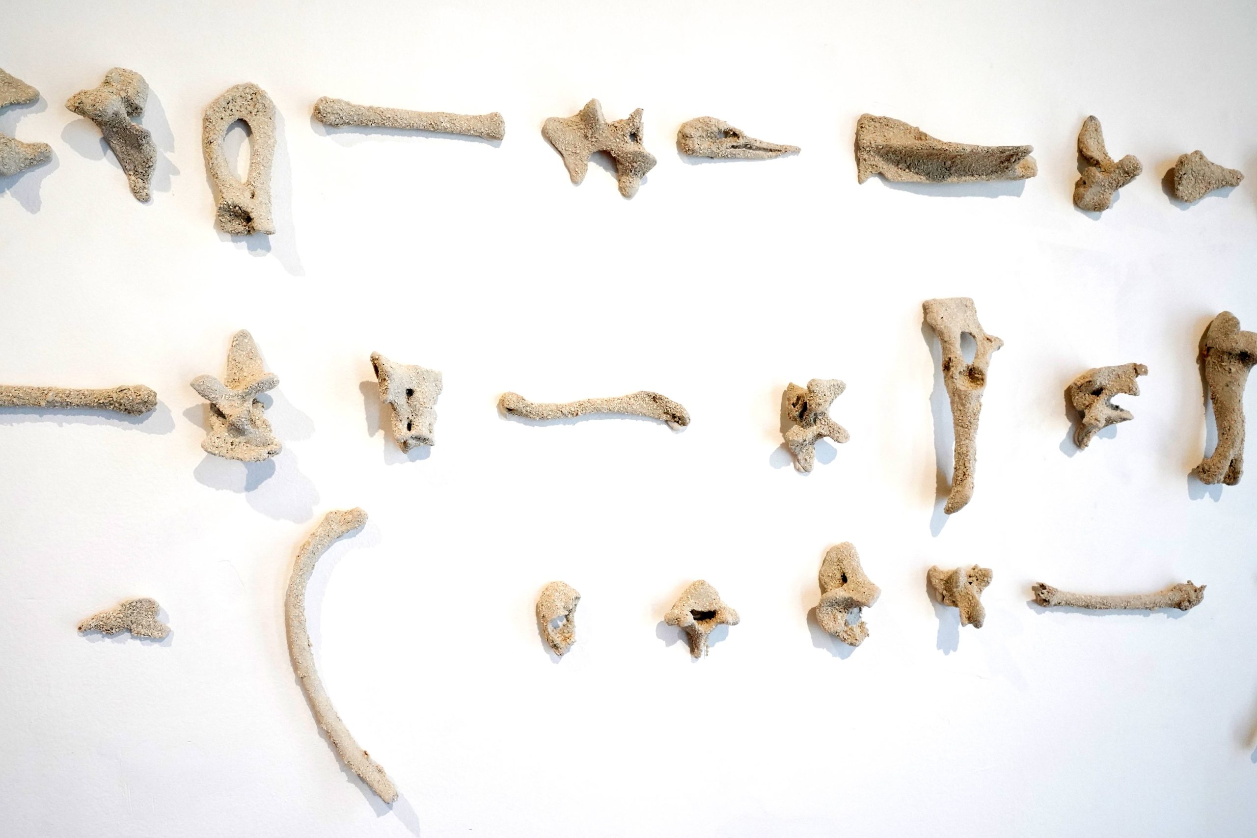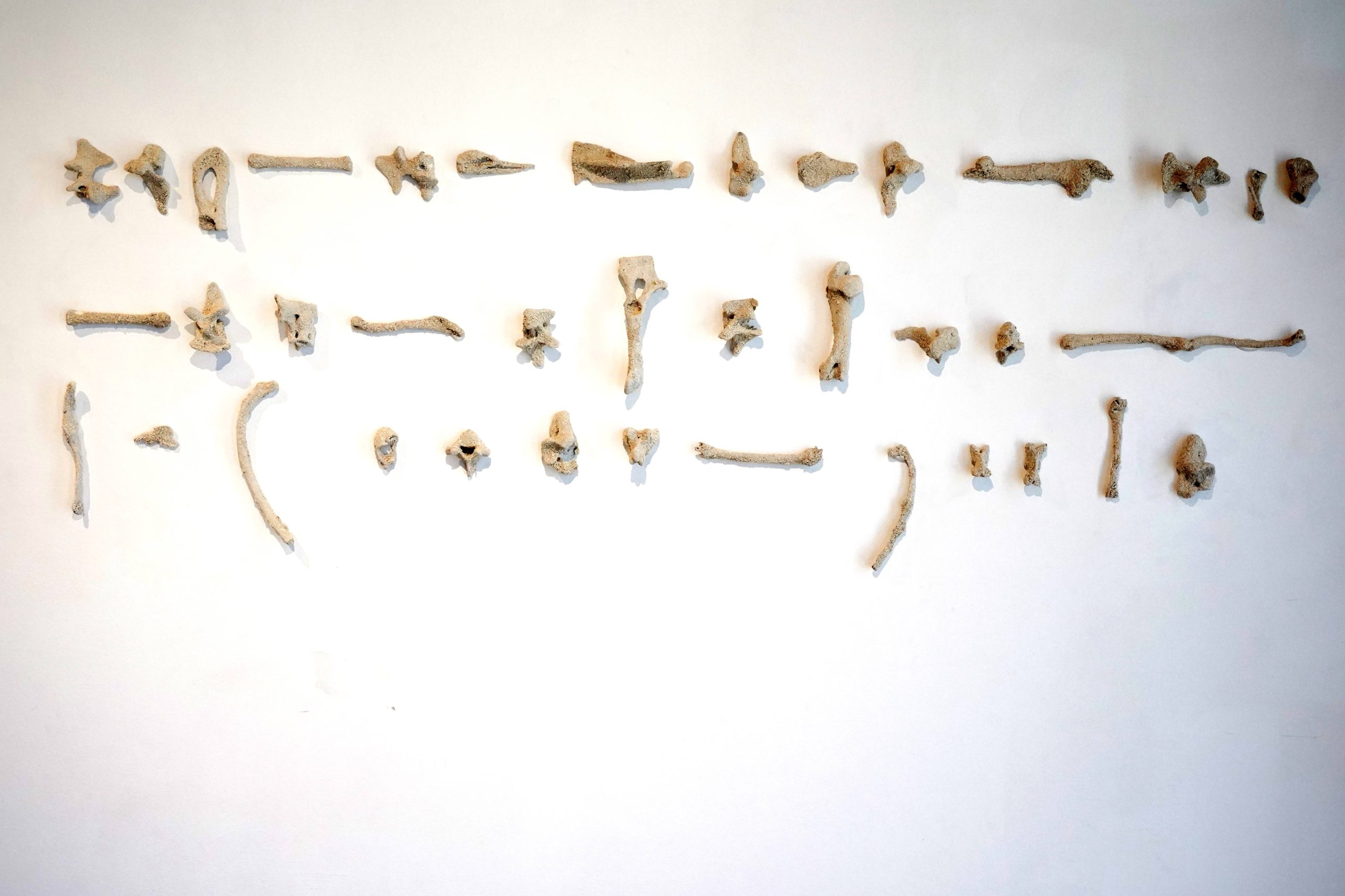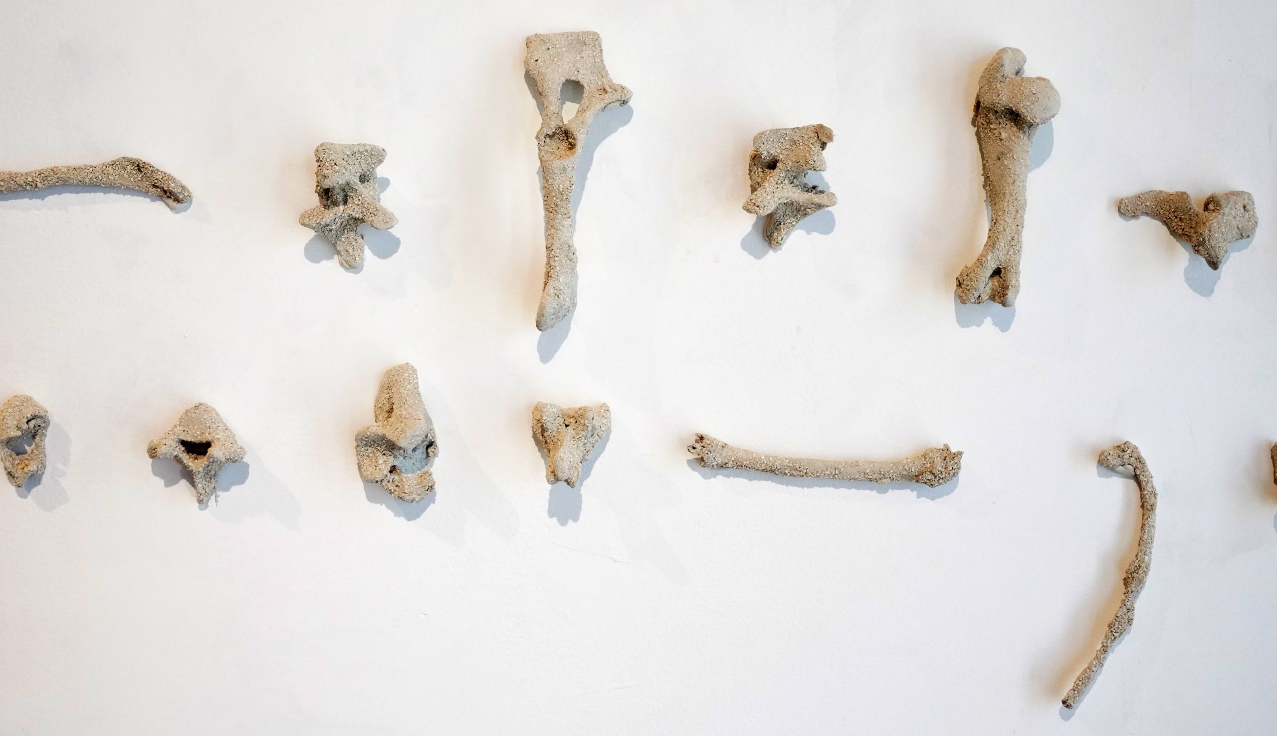 Un poema escrito con huesos, Huesos cubiertos de carbonato de calcio, 160 x 50 cm.