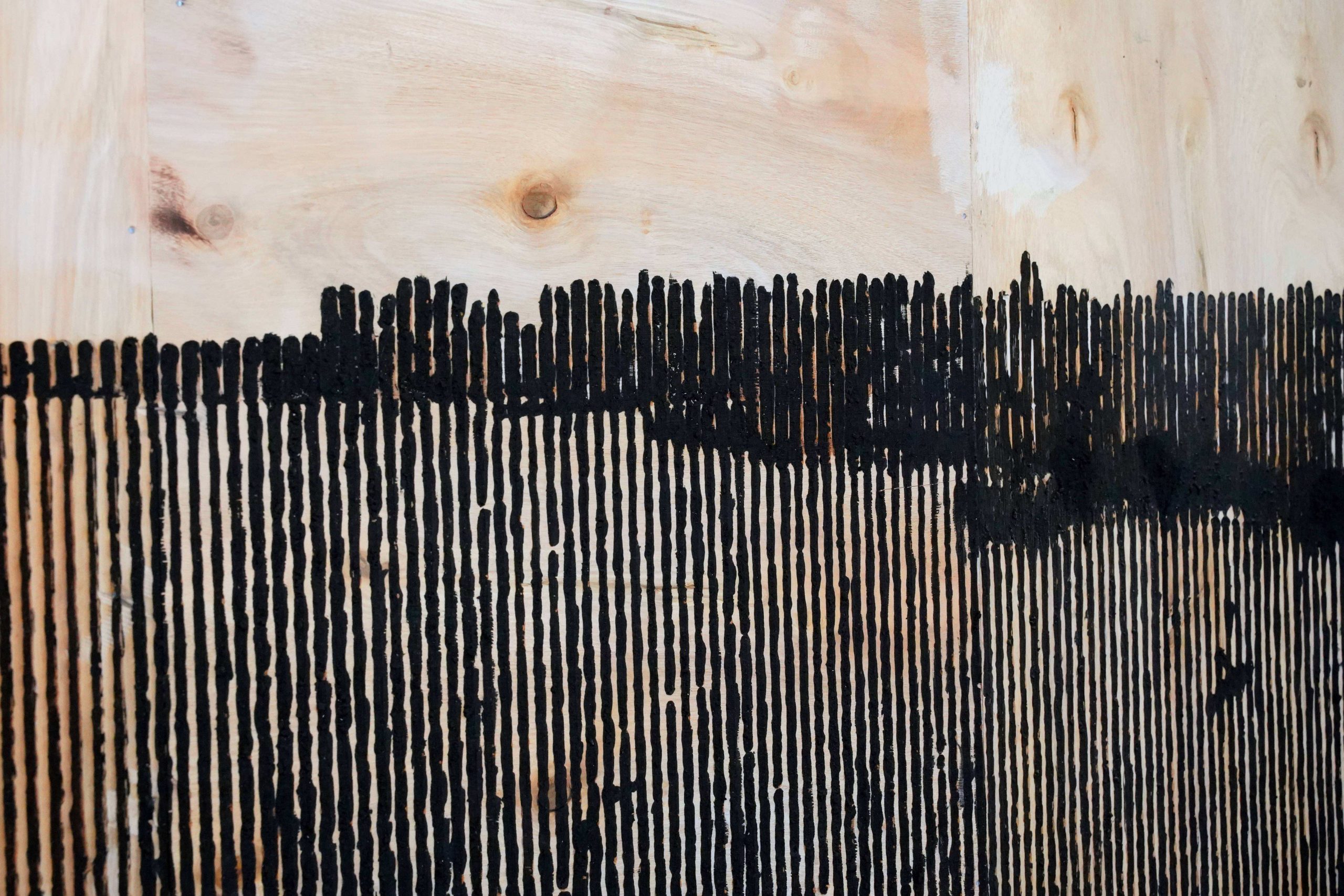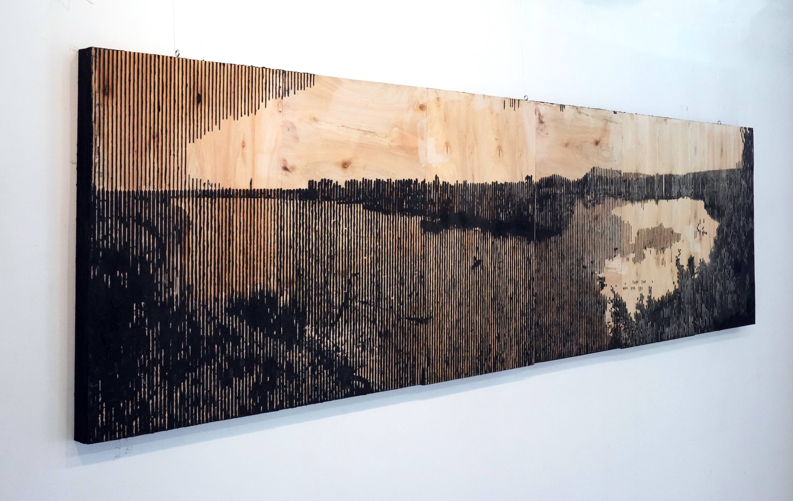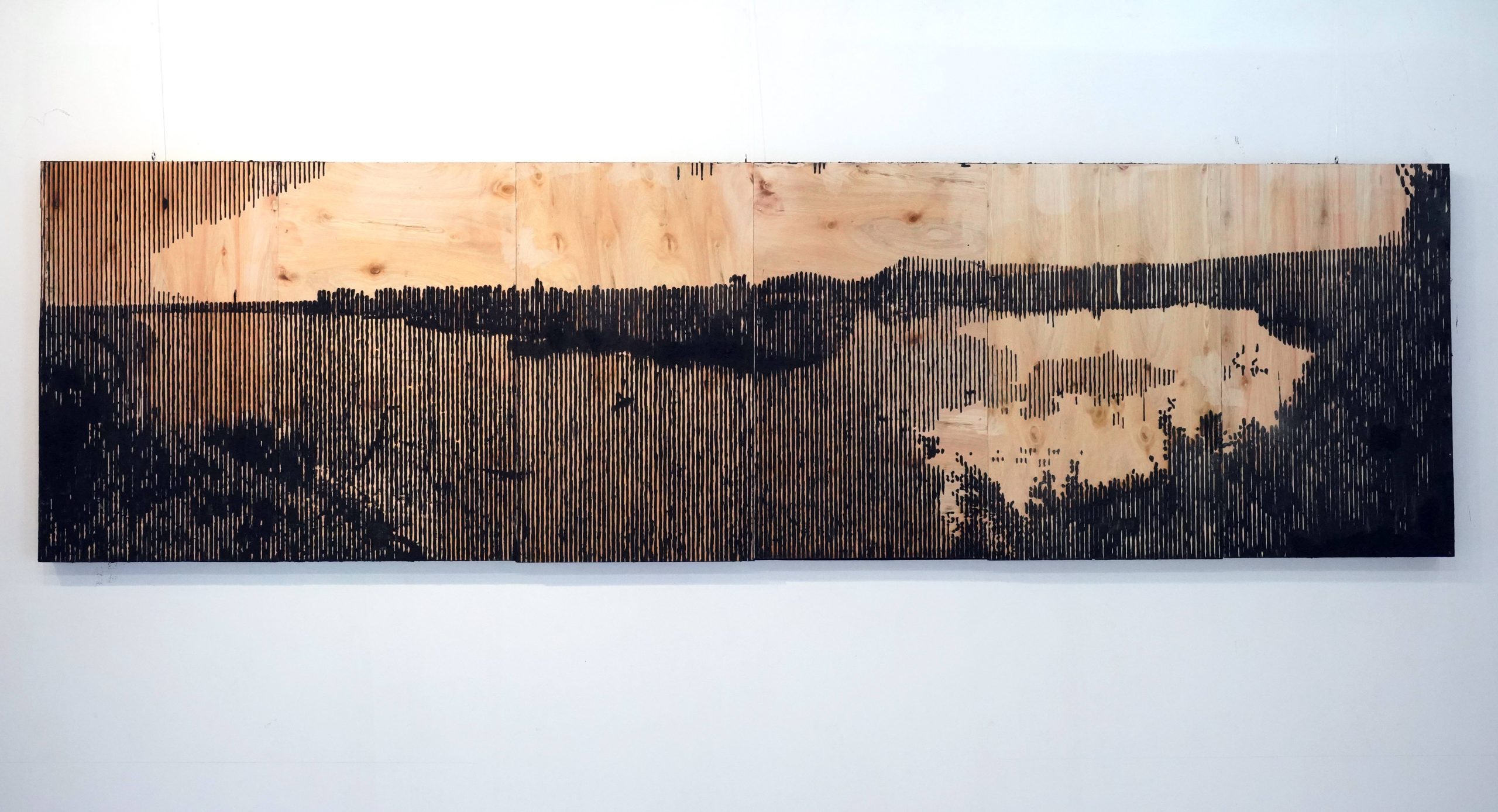 Humedal, Carbón sobre lámina de eucaliptus, 270 x 78 cm.