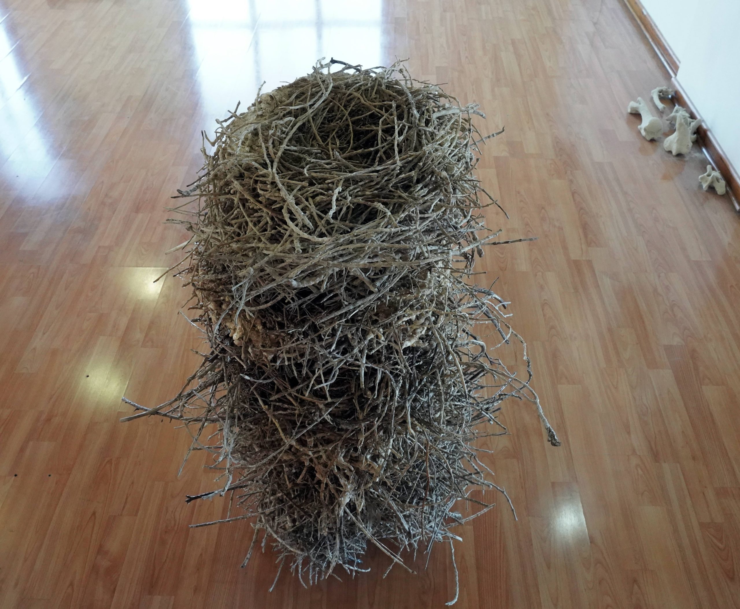 Nidos, 6 nidos de Cormorán negro cubiertos con resina, 105 x 50 x 50 cm.